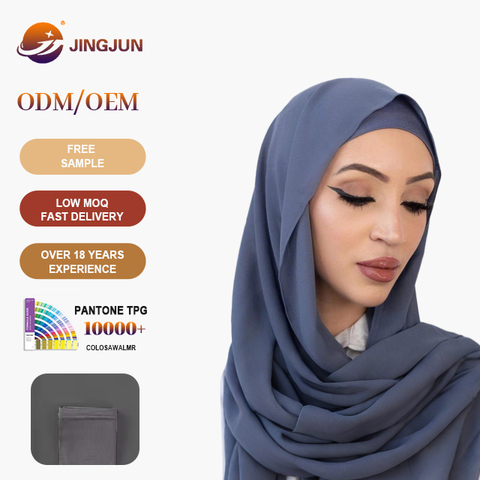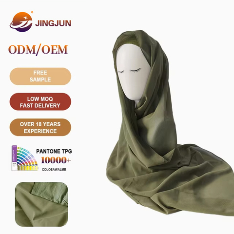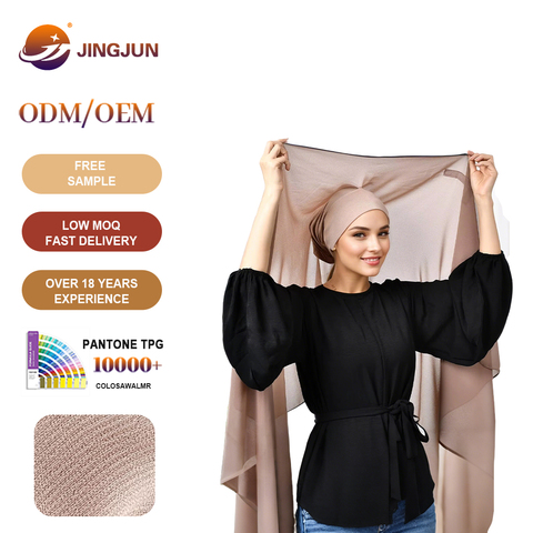 Fornitore all'ingrosso di colori solidi avvolge scialli donne musulmane sciarpa abbinata colore Chiffon Hijab con sopra il collo cappuccio interno
