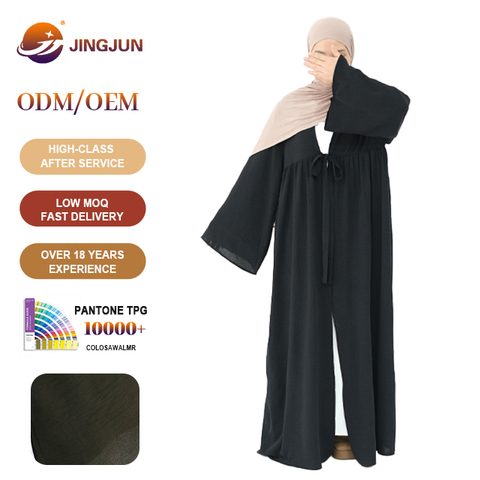 เดรสคาร์ดิแกนผ้าเครปอาบายาสำหรับผู้หญิงชุดมุสลิมแบบดั้งเดิมชุดเดรสผ้าโพลีเอสเตอร์พร้อมเชือกผูก
