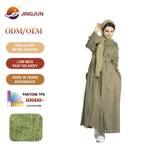 EID ชุดเดรสอาบายาผ้าลินินเนื้อแข็งแบบเปิดด้านหน้าสำหรับมุสลิมเสื้อผ้าและเครื่องประดับมุสลิมแบบดั้งเดิมสำหรับฤดูใบไม้ร่วง