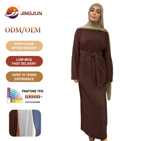 เดรสอาบายาผ้าซาตินสุภาพเรียบร้อยพร้อมเข็มขัดปรับได้ชุดเสื้อคลุมโพลีเอสเตอร์แบบอิสลามดั้งเดิมสำหรับฤดูใบไม้ผลิ